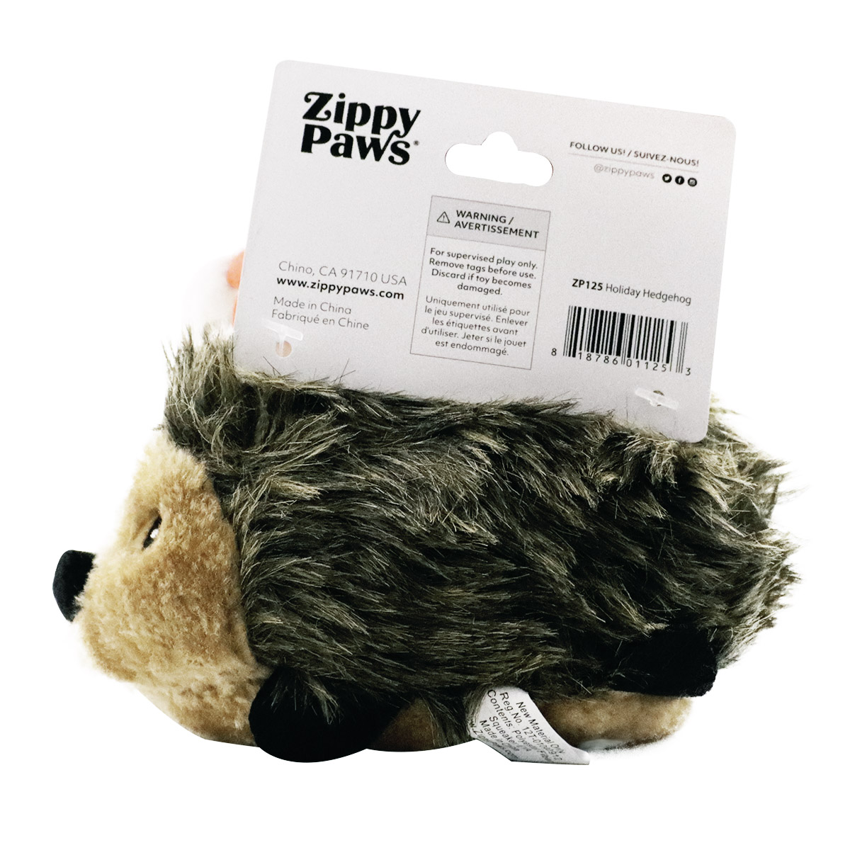 Our best-selling Hedgehogs get festive for the holidays! Dogs love the furriness and squeakability of these adorable hedgehogs. Comes with a removable Santa hat. ZippyPaws Hedgehogs are durable for fetching, tugging, squeaking, and snuggling. *Squeaker: 1 large Blaster squeaker *Toy size: 8" x 4.5" x 5"